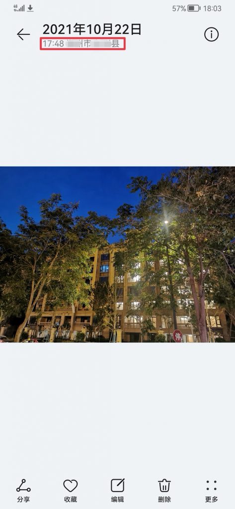 可以看到顶上完整显示了拍摄时间,拍摄地点。