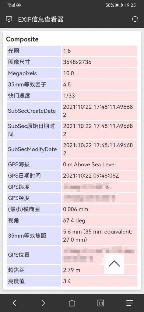 通过一些EXIF信息在线查看器可以看到更详细的信息。