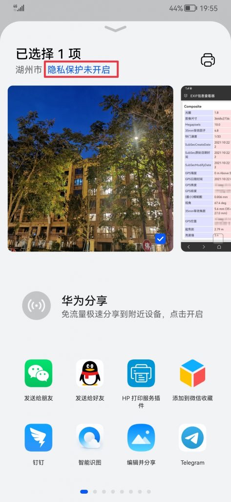 不过有一种情况是例外,当你在私聊、群聊中发送图片时勾选了原图,那么照片的EXIF信息还是会原样保留的。所以在发送图片时尽量不要勾选“原图”。