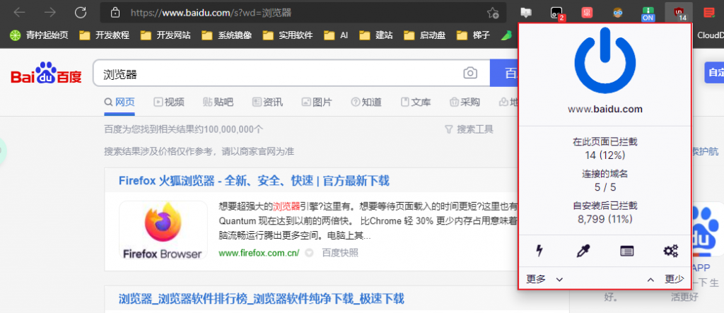 前面安装的脚本其实已经可以去掉搜索引擎的广告了,不过页面上的广告还是没有去掉,这时我们可以借助一些拓展解决。