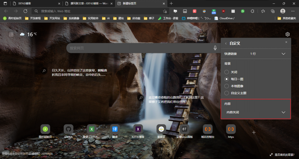 注意:链接类的新标签页可以在浏览器设置中添加: