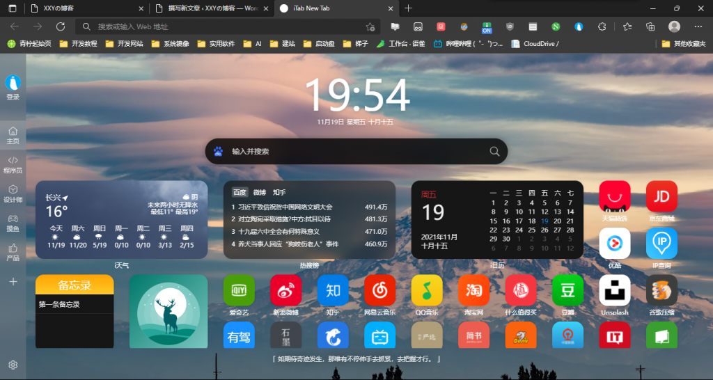 如果你还觉得不够好看,那么可以试试下面的新标签页:
